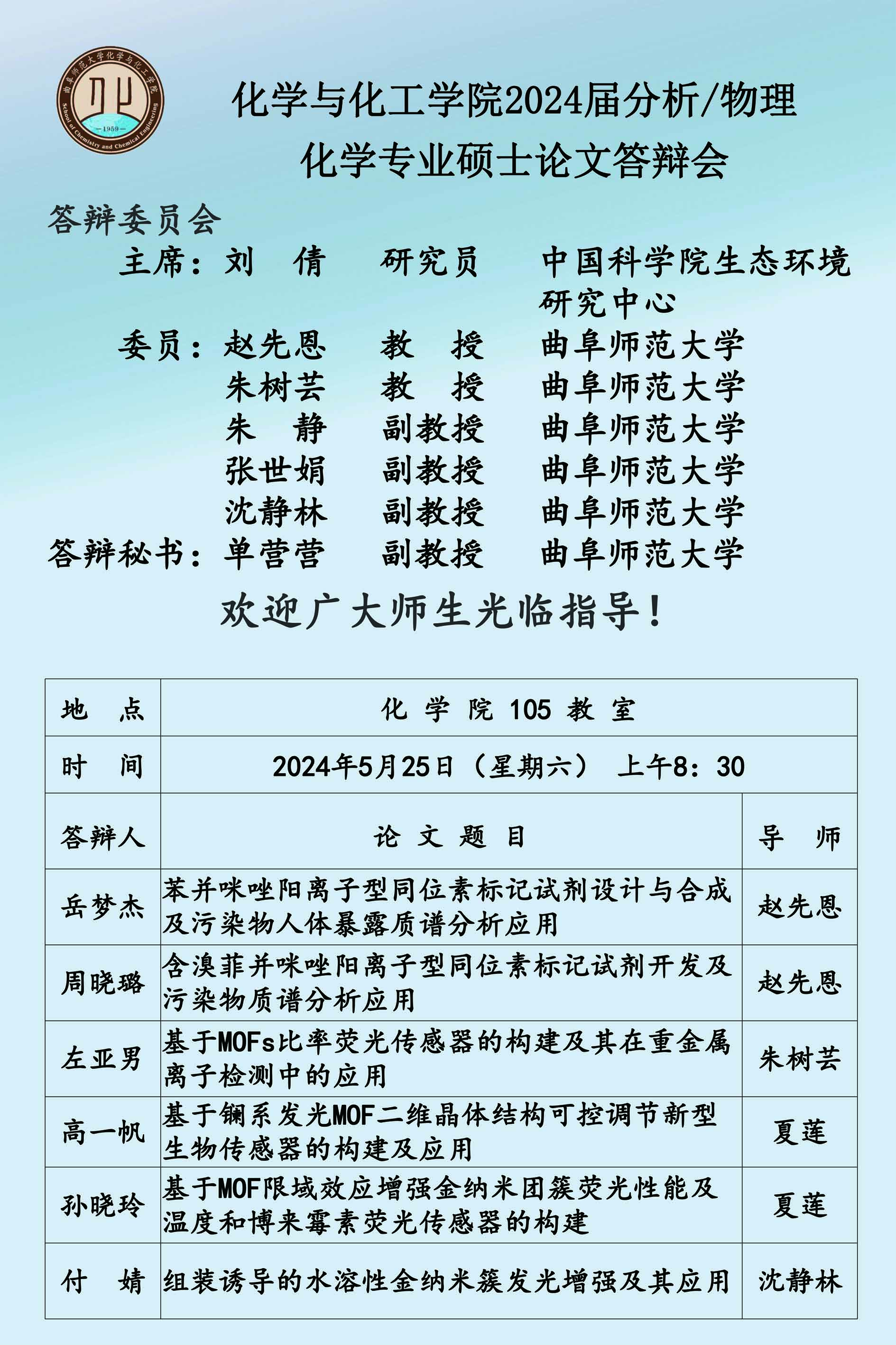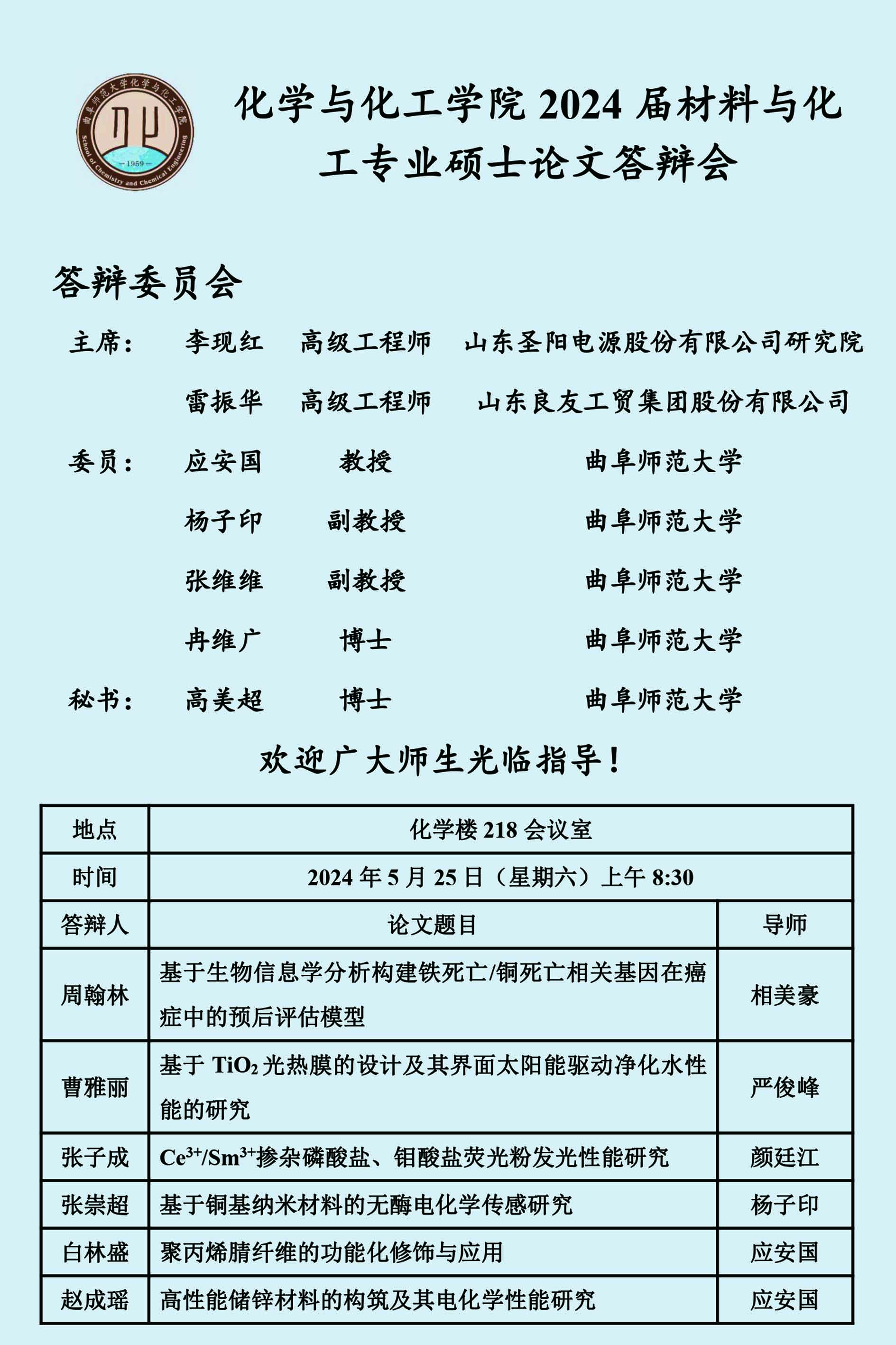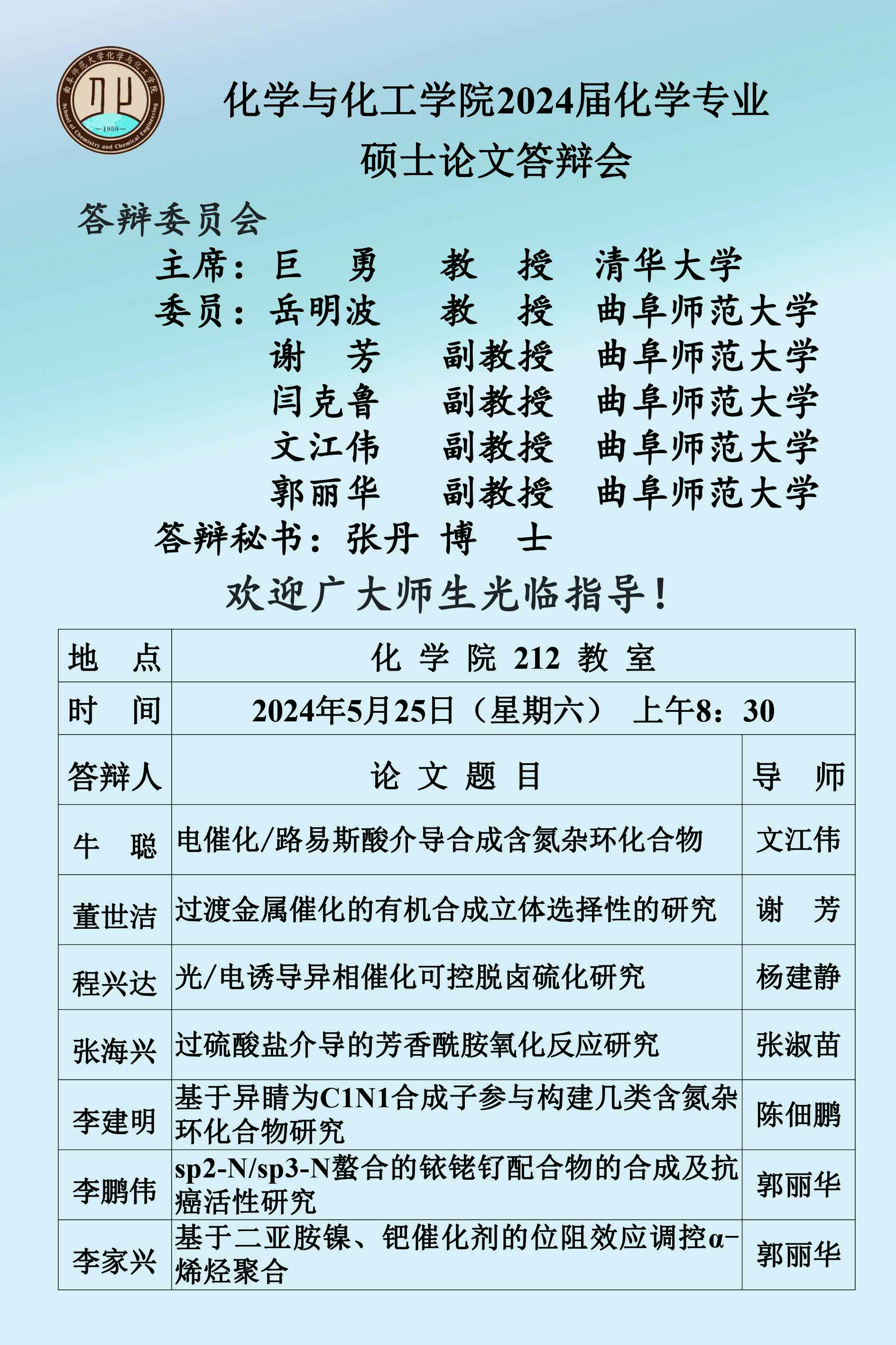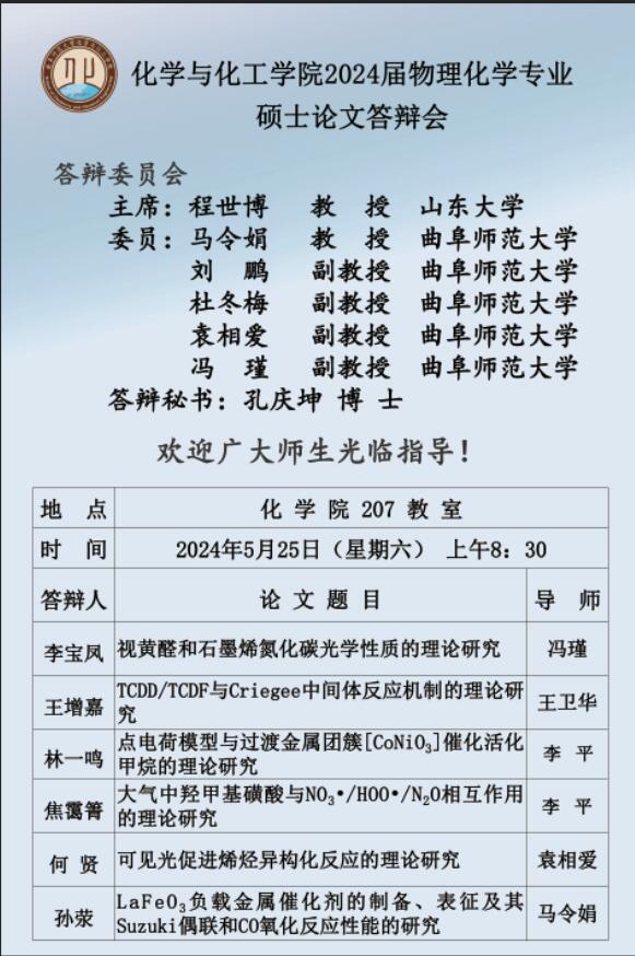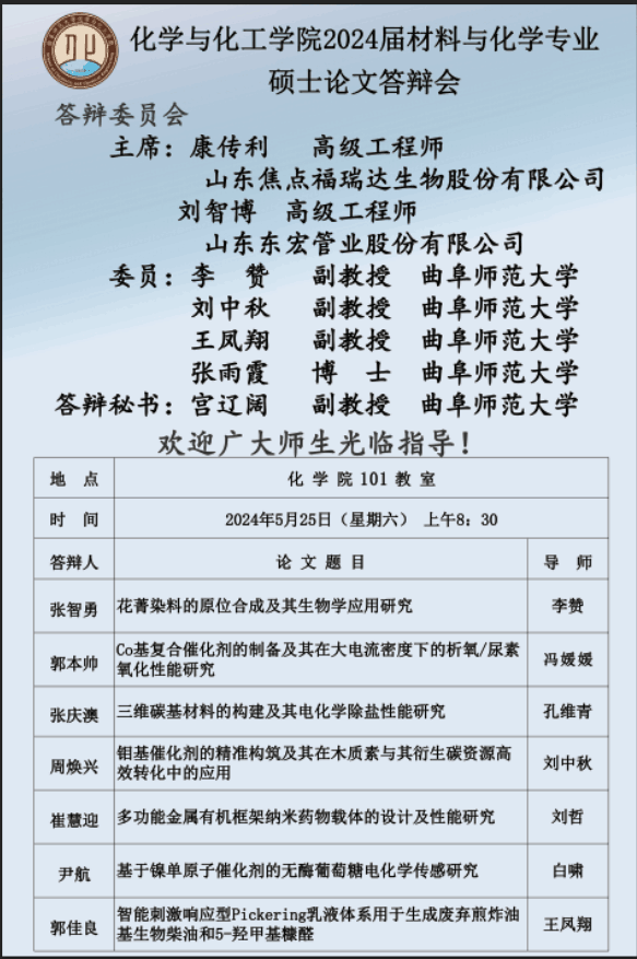 【5月25日】2024届硕士论文答辩会公告