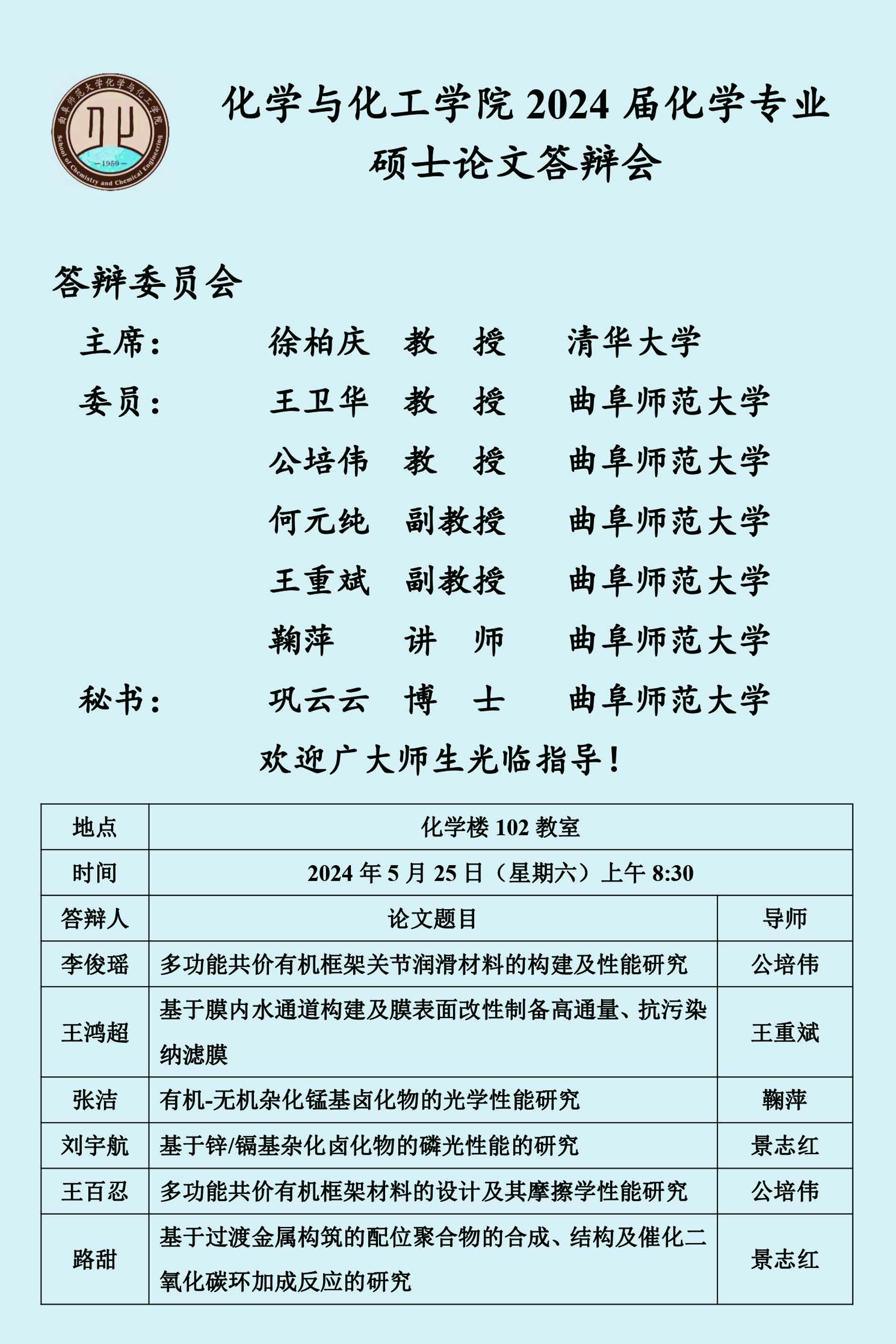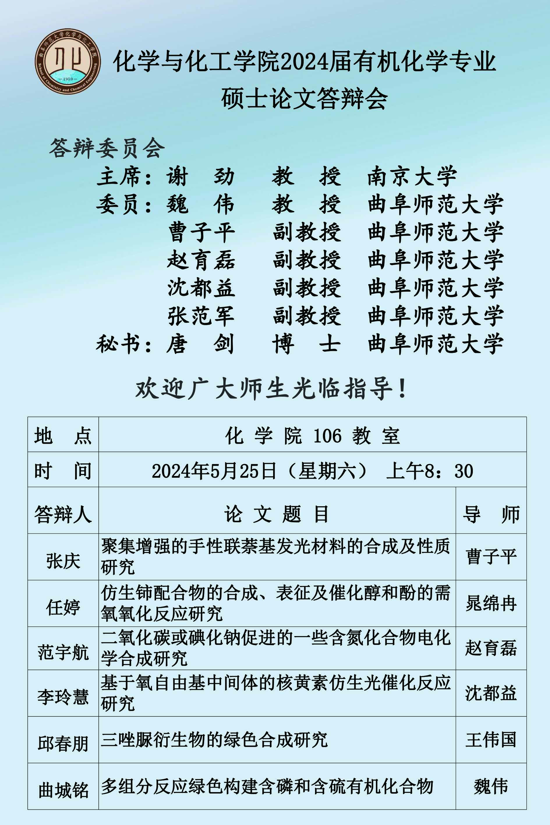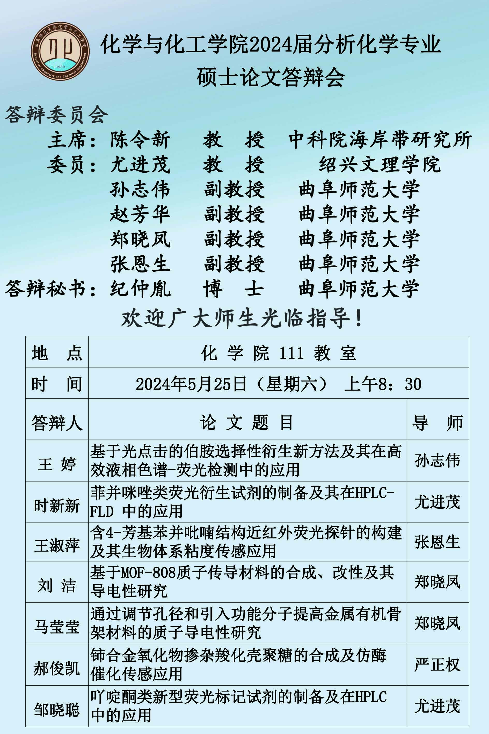【5月25日】2024届硕士论文答辩会公告