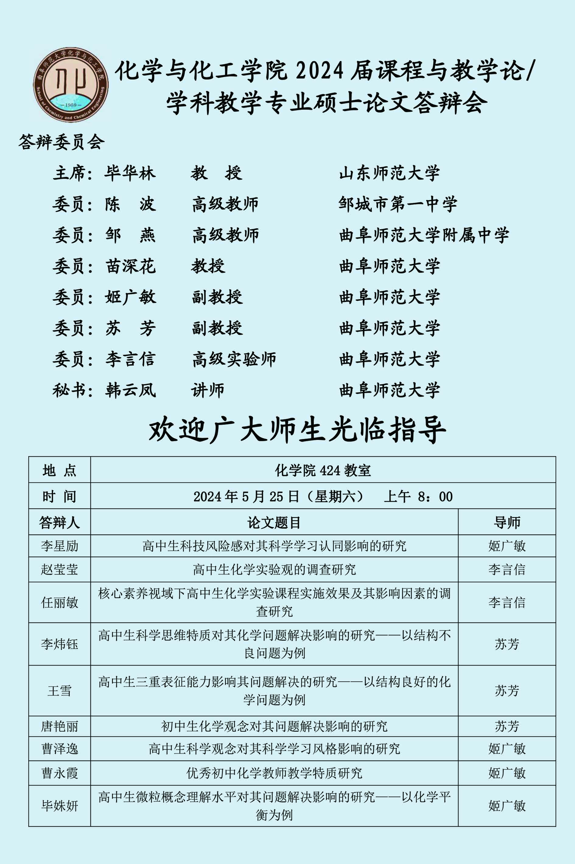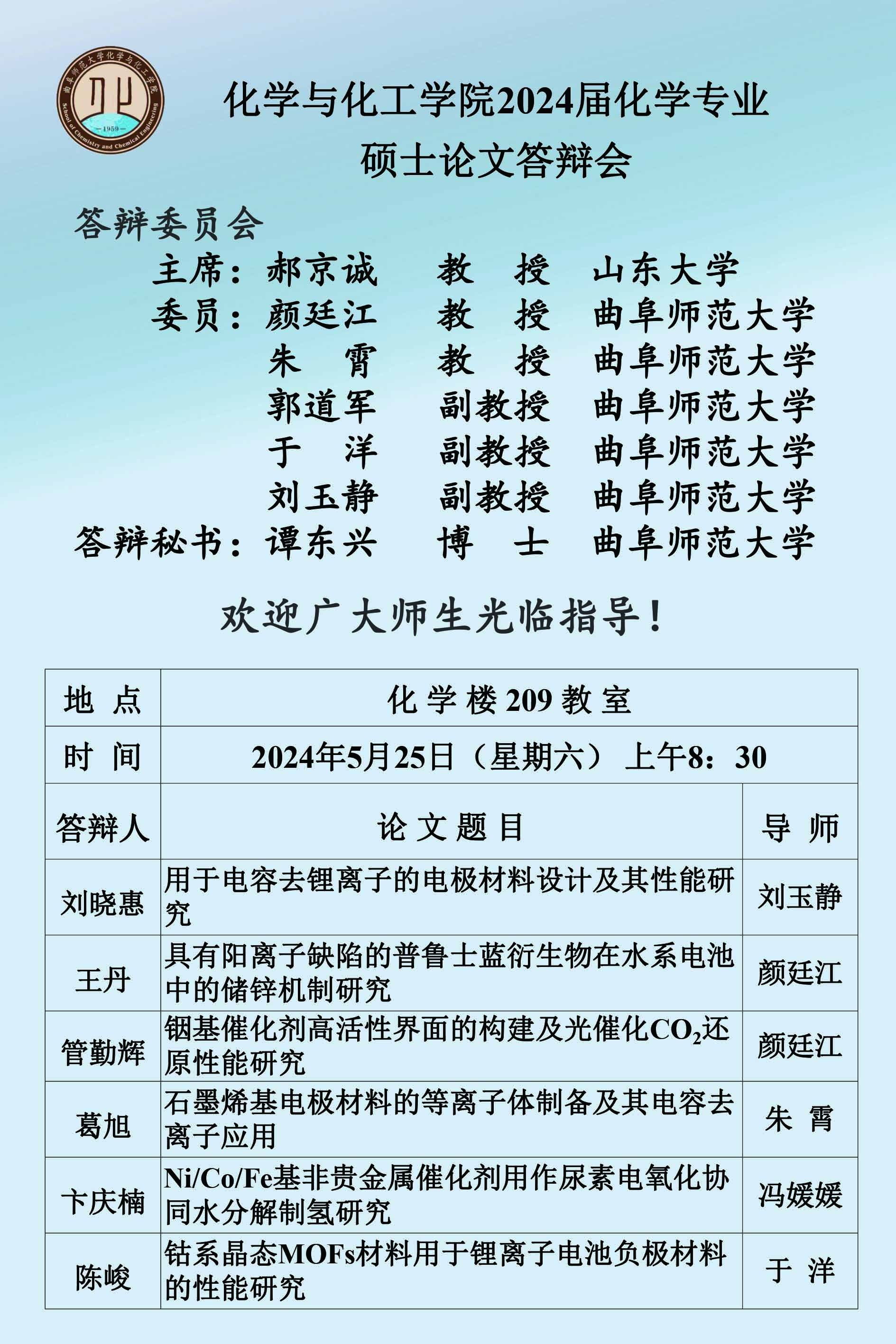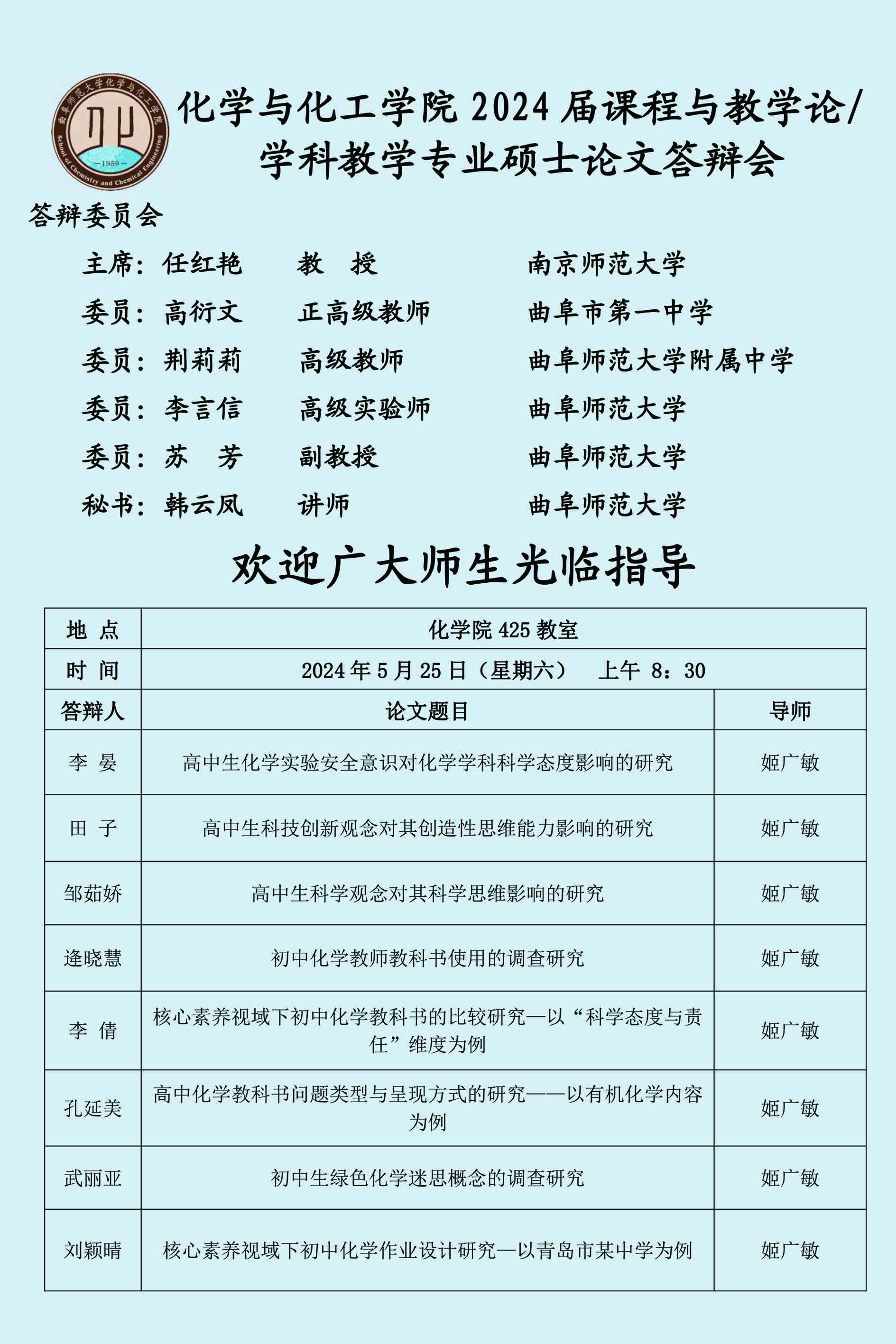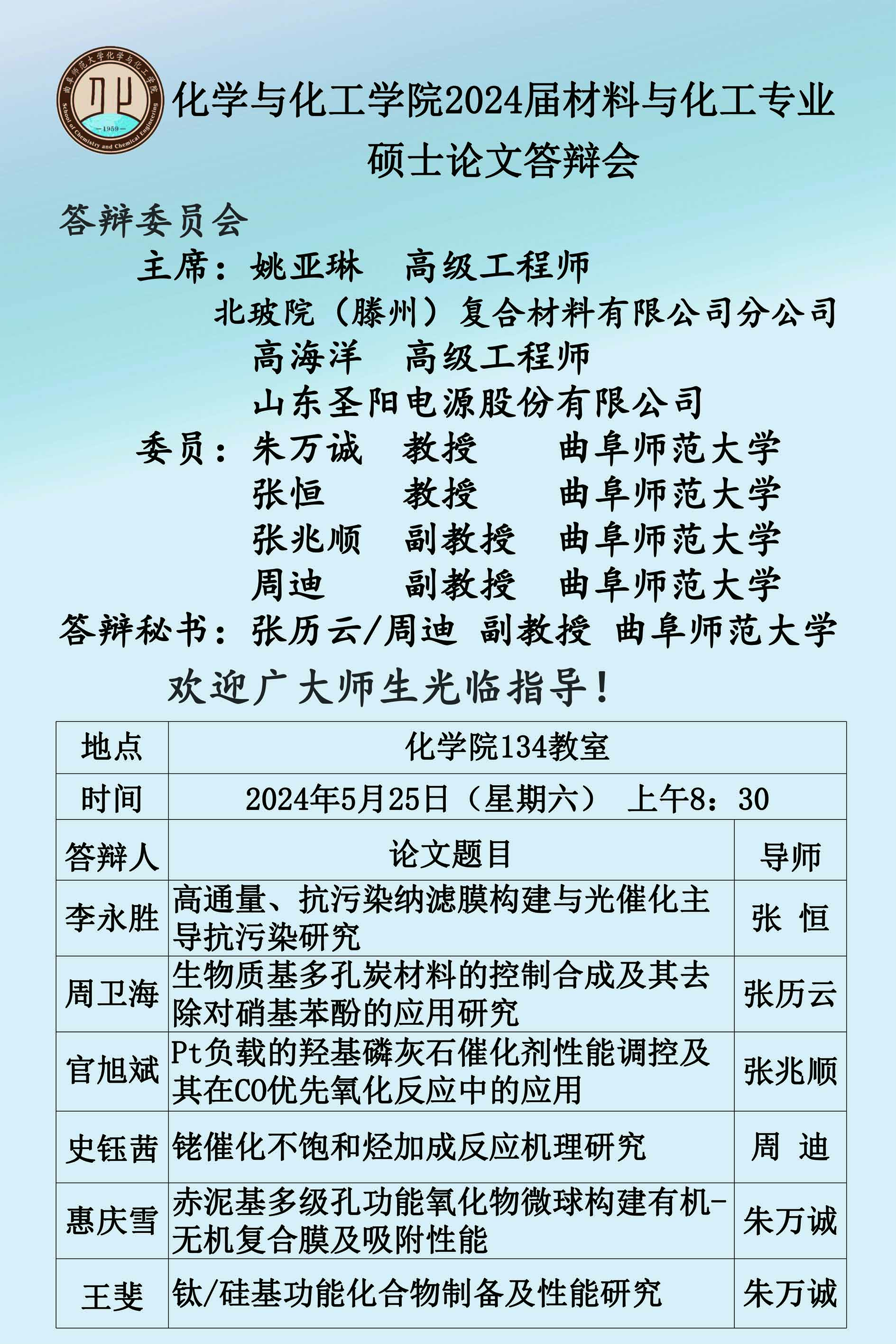 【5月25日】2024届硕士论文答辩会公告