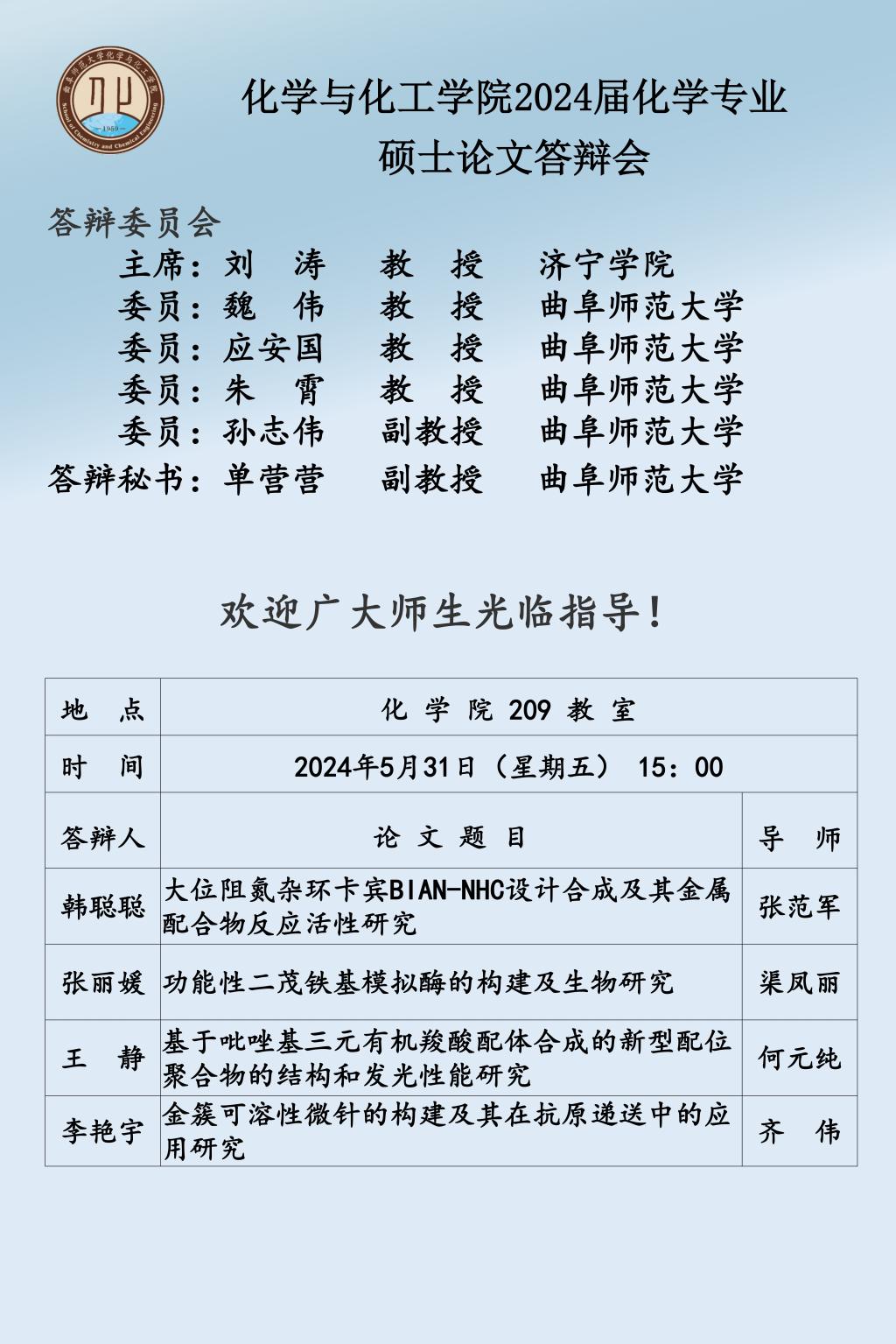 【5月25日】2024届硕士论文答辩会公告