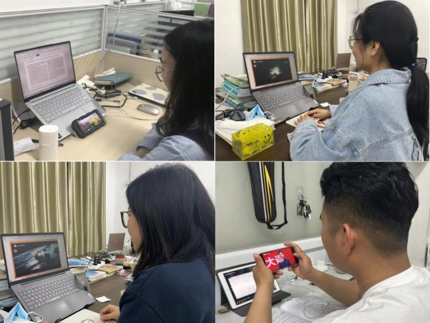 图为化院学子观看思政大课图