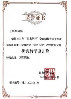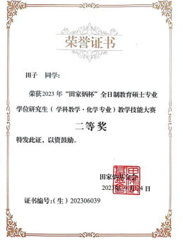 2021级学科教学(化学)专业的田子同学及2022级学科教学(化学)专业的王新月同学参加了此次决赛,分别获得了全国二等奖和优秀教学设计奖的好成绩。这是我院学子继在前几届比赛中获得佳绩后的又一次出色表现。与此同时,篮球直播吧
