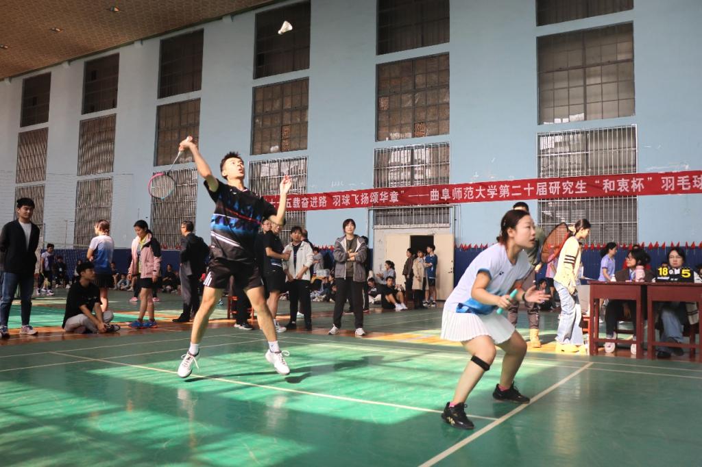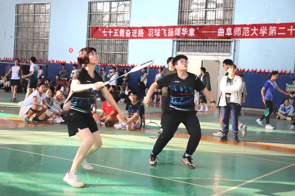 (通讯员: 李汶嵘 张慧颖 摄影: 周凤迪 陈贵香)“七十五载奋进路,羽球飞扬颂华章”,为庆祝新中国成立75周年,深入贯彻落实习近平总书记关于体育工作的重要指示精神,丰富师生业余文化生活,推动研究生德智体美劳全面发展。曲阜师范大学第二十届研究生“和衷杯”羽毛球师生联谊赛于11月1日在体育科学学院球类馆拉开序幕。本次联谊赛由校团委主办,研究生处、学生工作处和体科院协办。比赛为期三天,共设混合双打、男子双打1、男子双打2、女子双打1、女子双打2五个项目。本次比赛曲阜校区共有16支队伍参赛,篮球直播吧