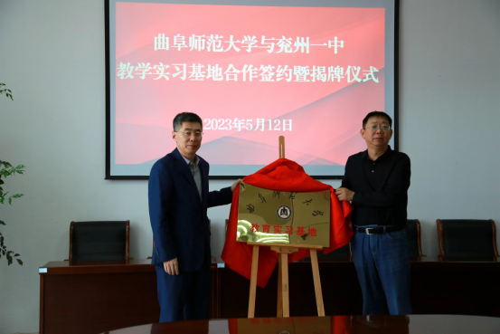 冯媛媛院长与兖州一中副校长徐建分别代表两校共同签订教学实践基地合作协议,赵琪书记与牛广犇总督学一起为教学实践基地挂牌。挂牌仪式后,学院领导与实习学生进行了座谈。