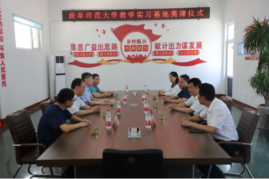 学科建设、专业发展及产学研合作情况,孙庆义总经理介绍了企业发展历程、产品种类及未来发展设想,陈少成副镇长介绍了陵城镇的产业布局、发展思路及产学研发展设想。随后,刘鹏副院长代表学院与良友食品有限公司总经理孙庆义签署合作协议,赵琪书记与孙庆义总经理为“曲阜师范大学教学实习基地”揭牌。双方表示,将在技术创新、学生培养、横向课题、高端培训、共建社会实践基地等领域开展深入合作。