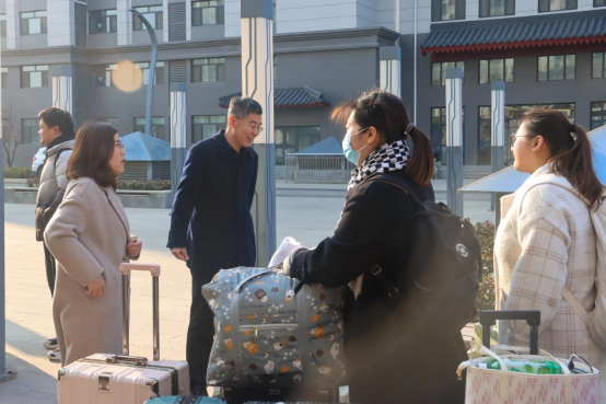 图为学院领导老师为学生送行