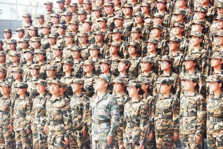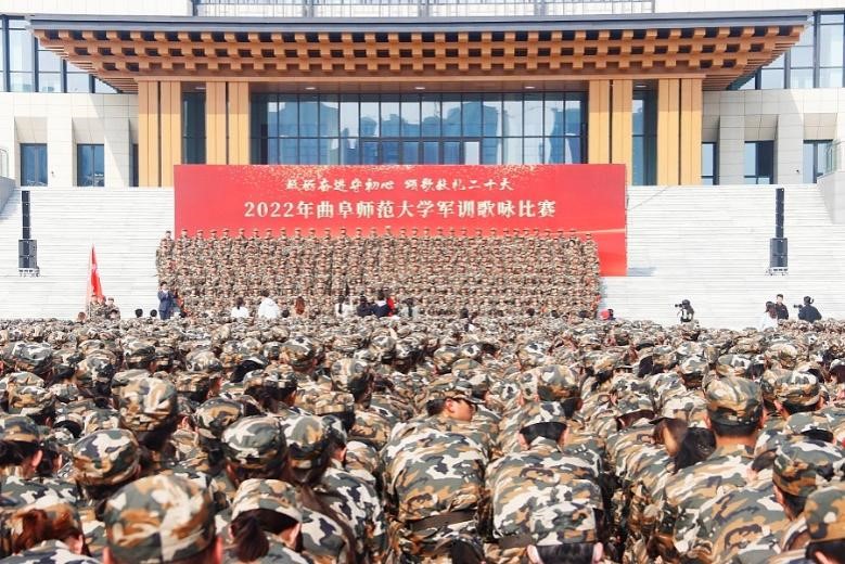图为曲阜师范大学2022年军训歌咏比赛现场