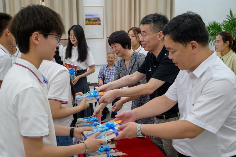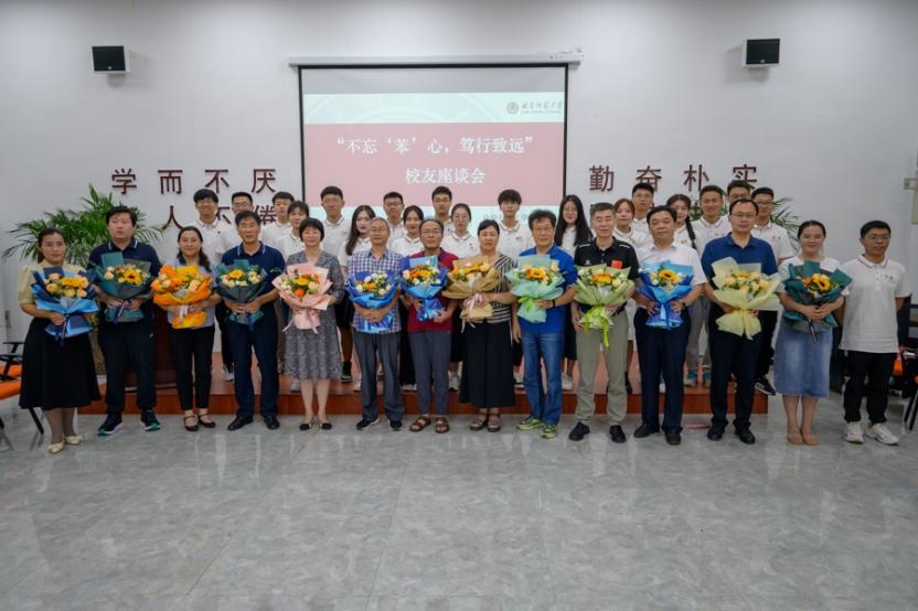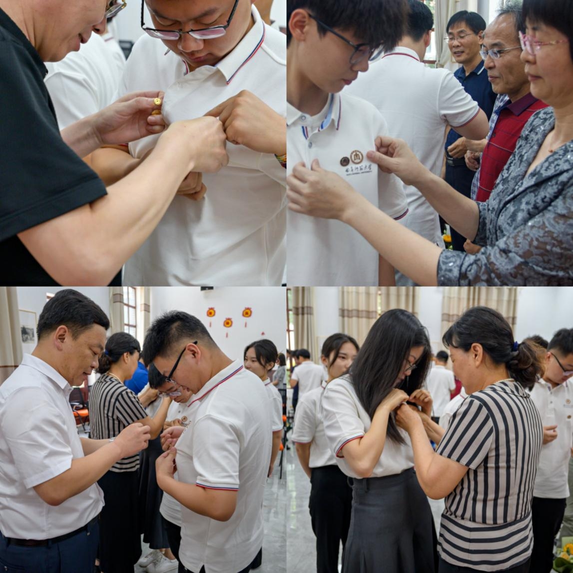 座谈会上,老师为毕业生代表佩戴了校徽,赠送了纪念品。同学们准备了诗歌朗诵,并向辛勤栽培他们的老师献上鲜花。座谈会在温馨愉快的氛围中结束。