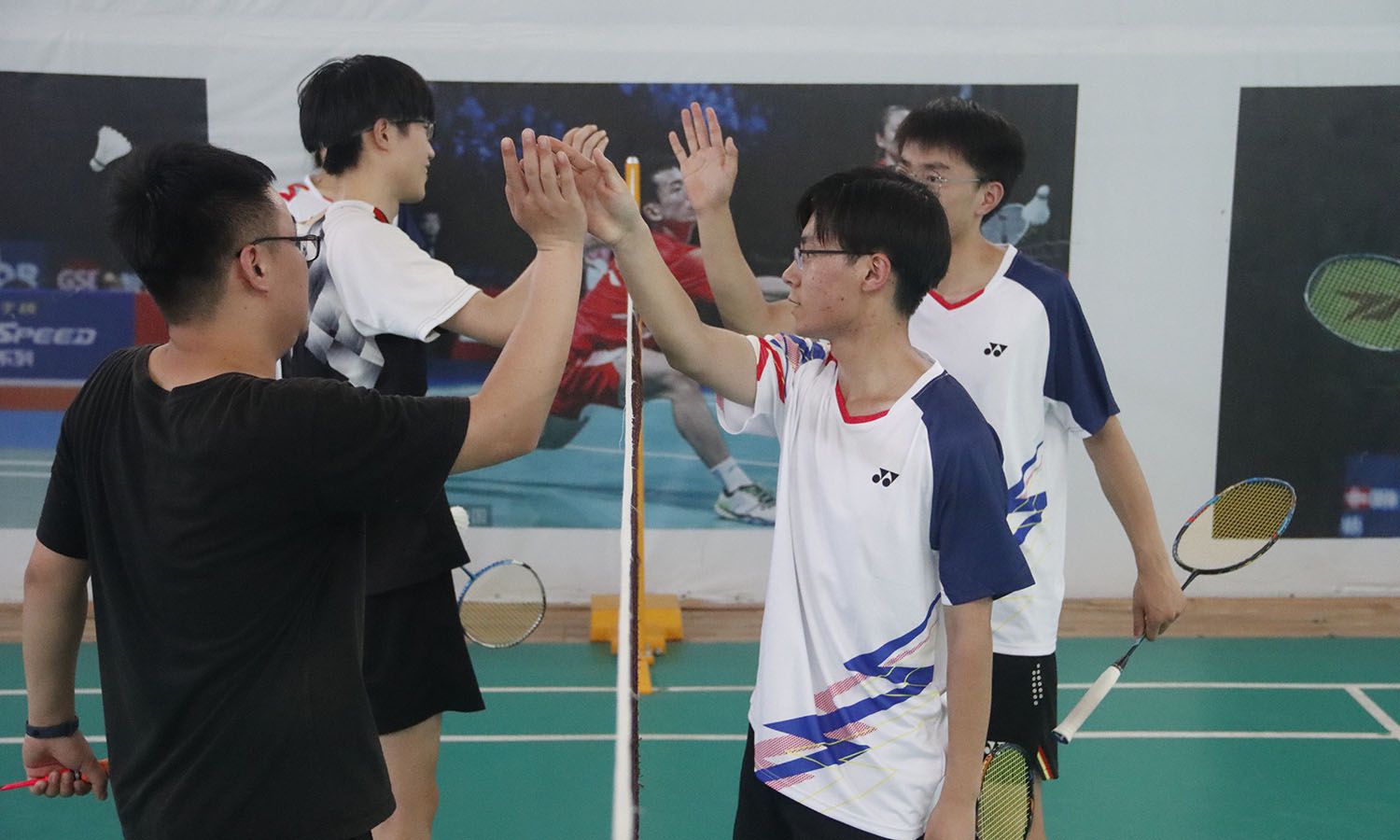 于传奇球馆举办2022年“毕业杯”羽毛球赛。部分教职工、羽毛球队的部分队员参加此次比赛。本次比赛分为男单、男双、女单、女双、混双。