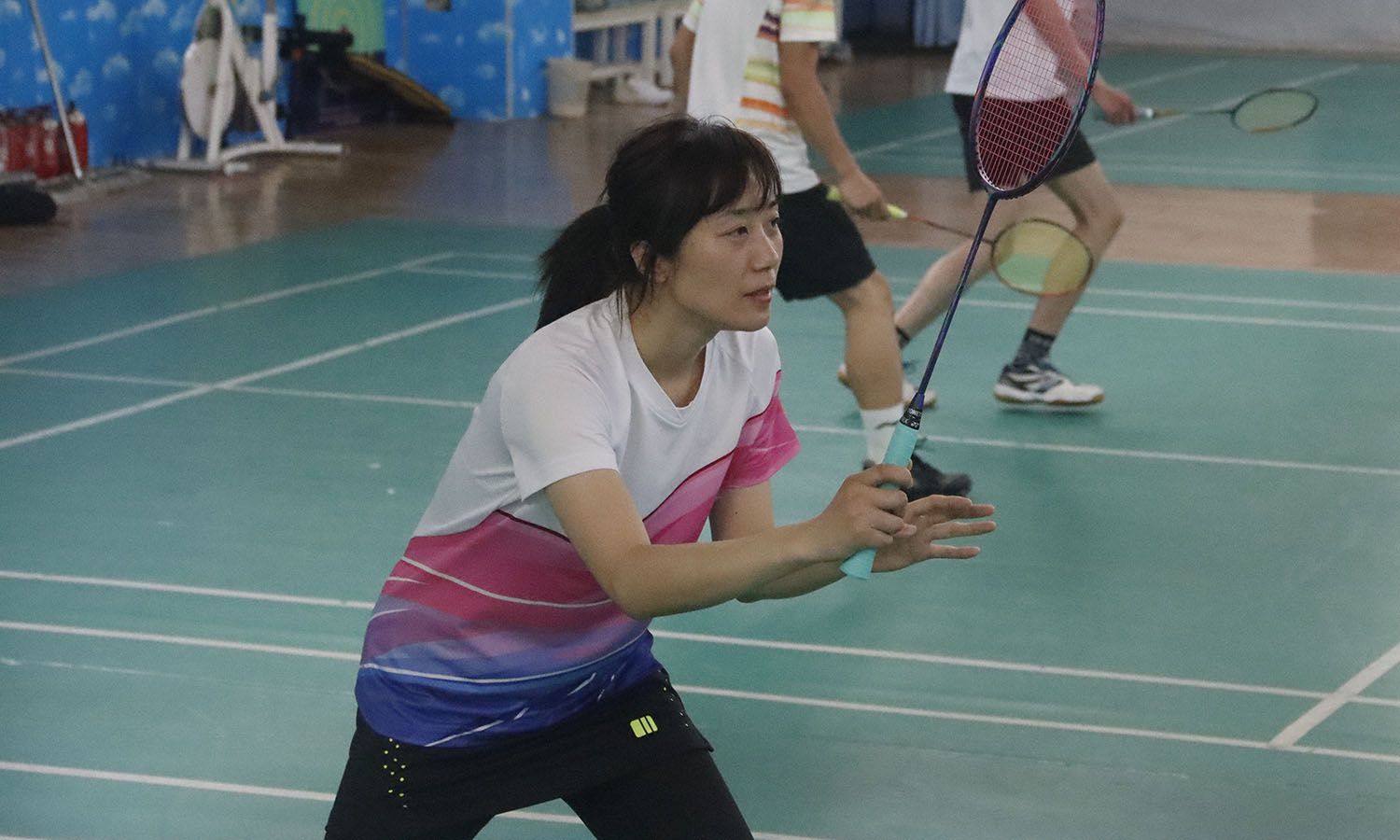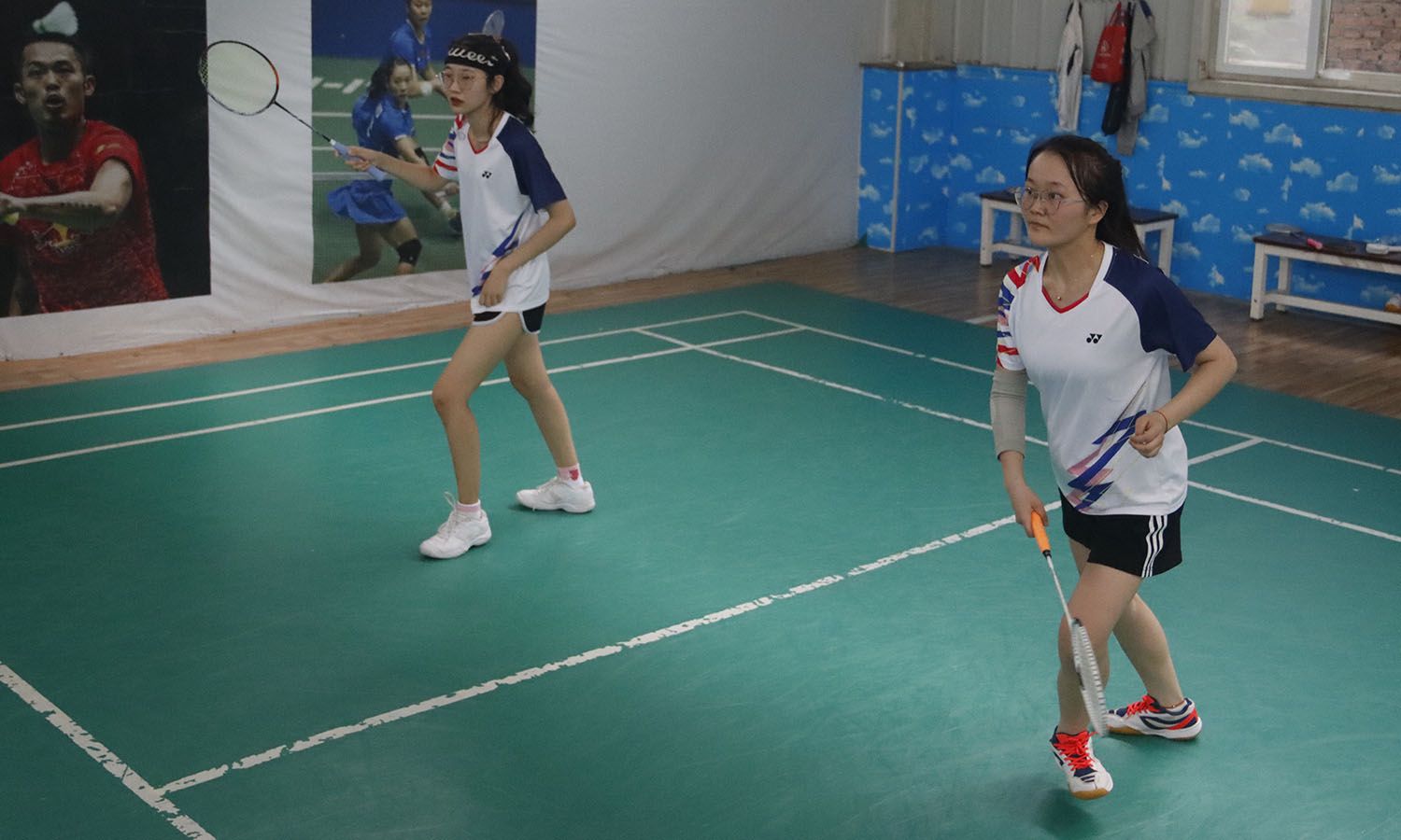图为女双选手的精彩表现