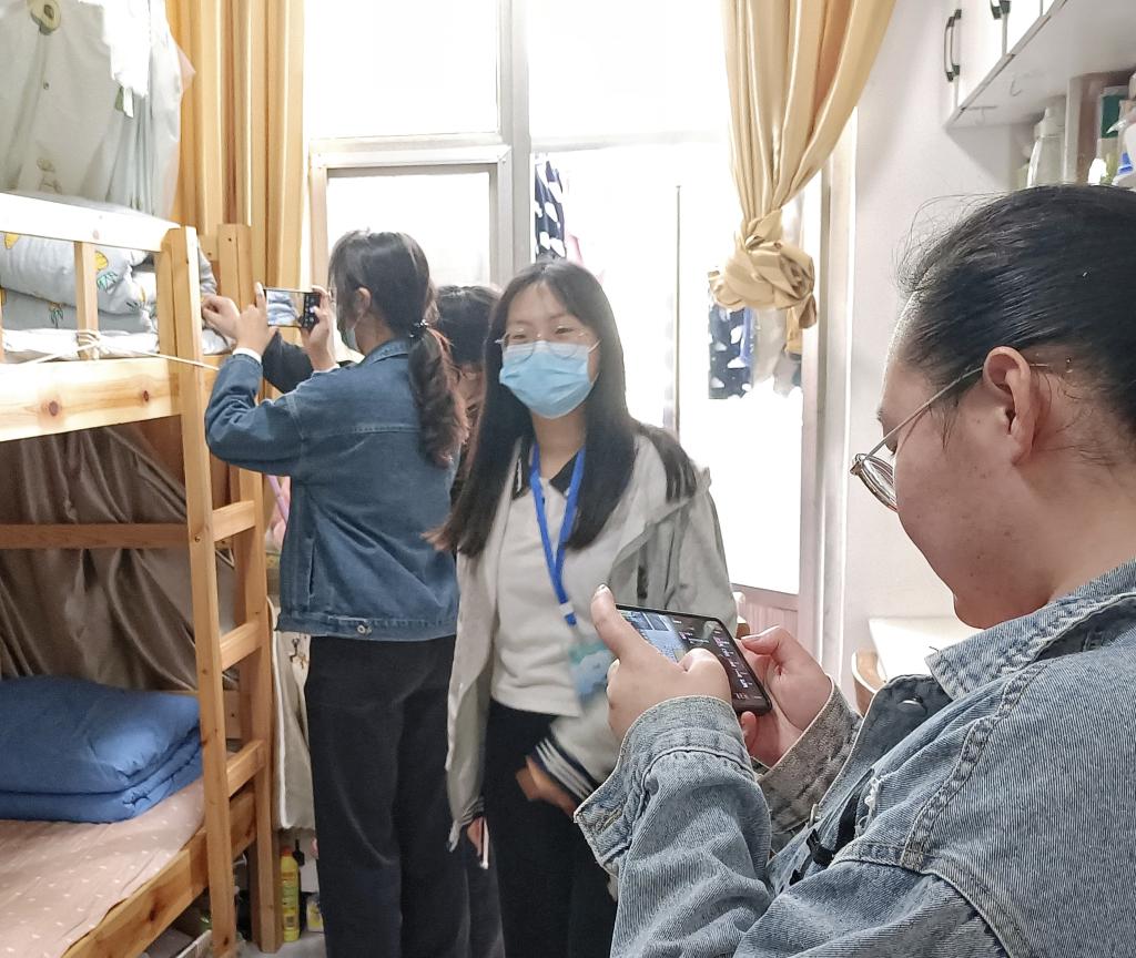 蒋君与学生会宿舍管理部成员深入学生宿舍,首先仔细查看宿舍环境、内务整理、用电安全等方面。在检查过程中,蒋君与同学们进行了亲切的交流。经过检查,学院对学院学生宿舍情况有了整体把握,大部分宿舍干净整洁,物品摆放整齐有序,且没有发现违章电器使用情况,针对个别宿舍出现的问题,学生会宿舍管理部成员认真记录,悉心提出整改意见并要求立即整改。