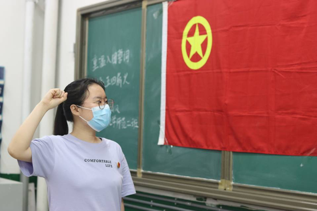 图为学院团支部成员重温入团誓词