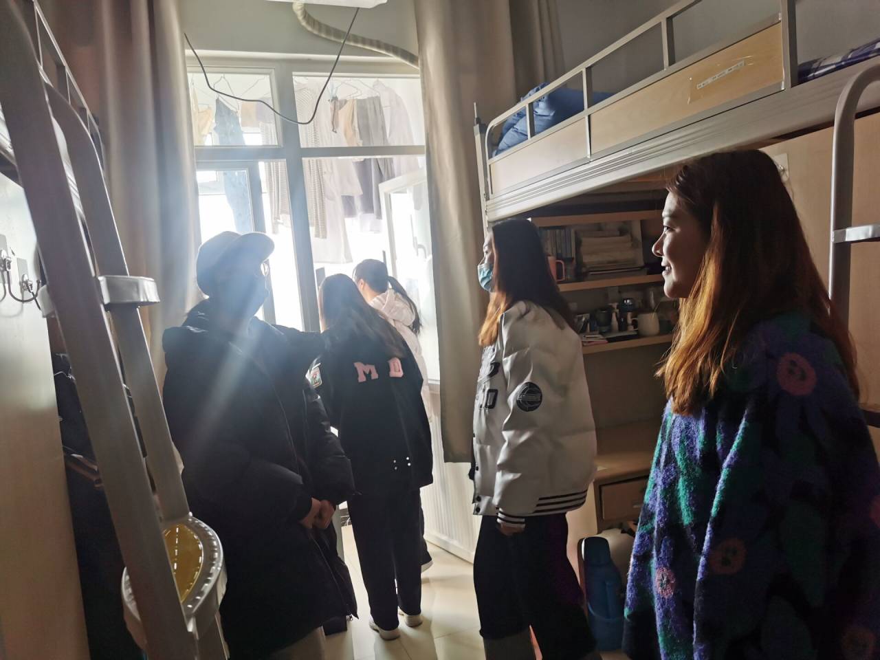 辅导员老师与学生会宿舍管理部成员组成专项工作小组,深入各宿舍园区,认真仔细地检查学生宿舍卫生打扫、消防安全情况。