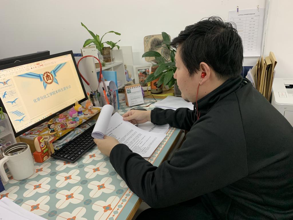 图为冯德浩老师召开线上全体本科生安全教育家长会