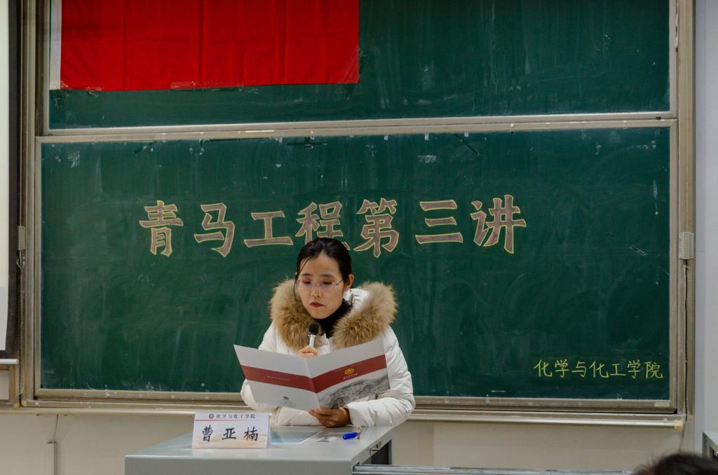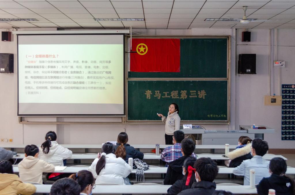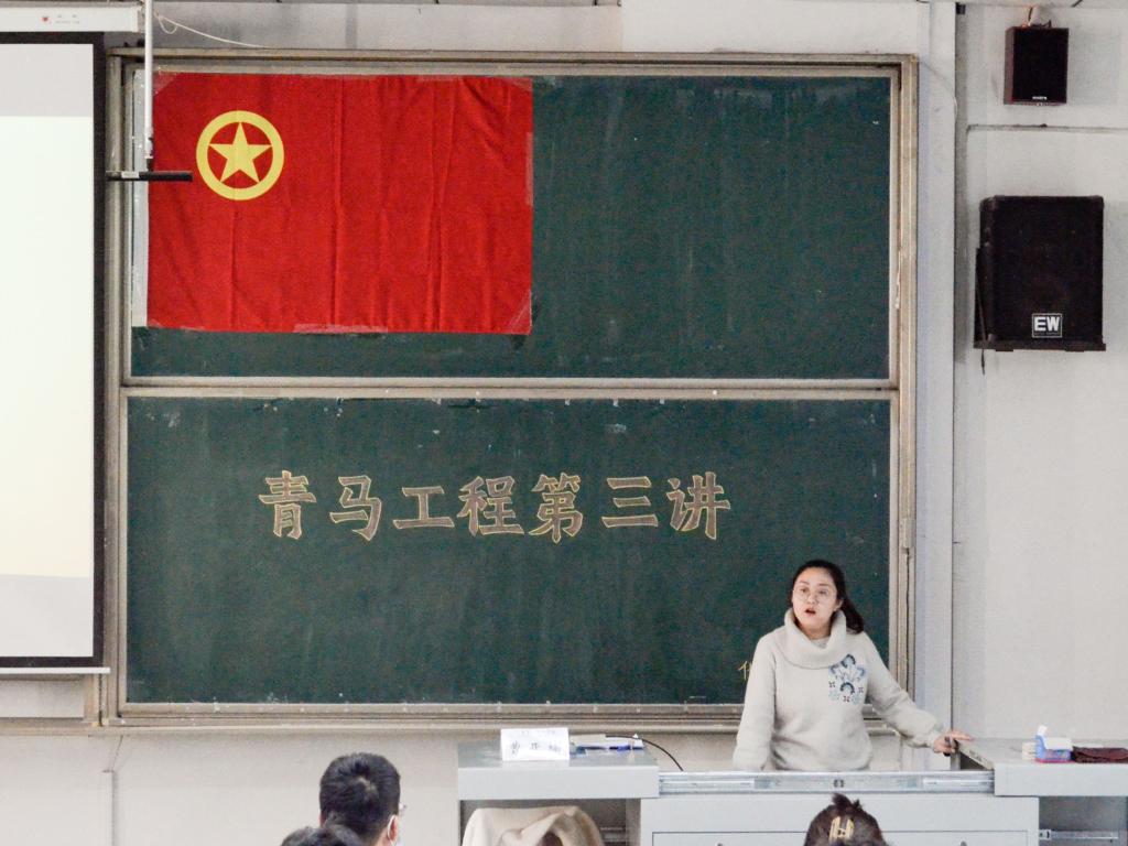 于综合楼201教室举办“青马工程”培训班第三讲。本次培训邀请学校学生工作处曹亚楠老师担任主讲,学院团委书记王亚平及“青马工程”培训班全体学员参加。