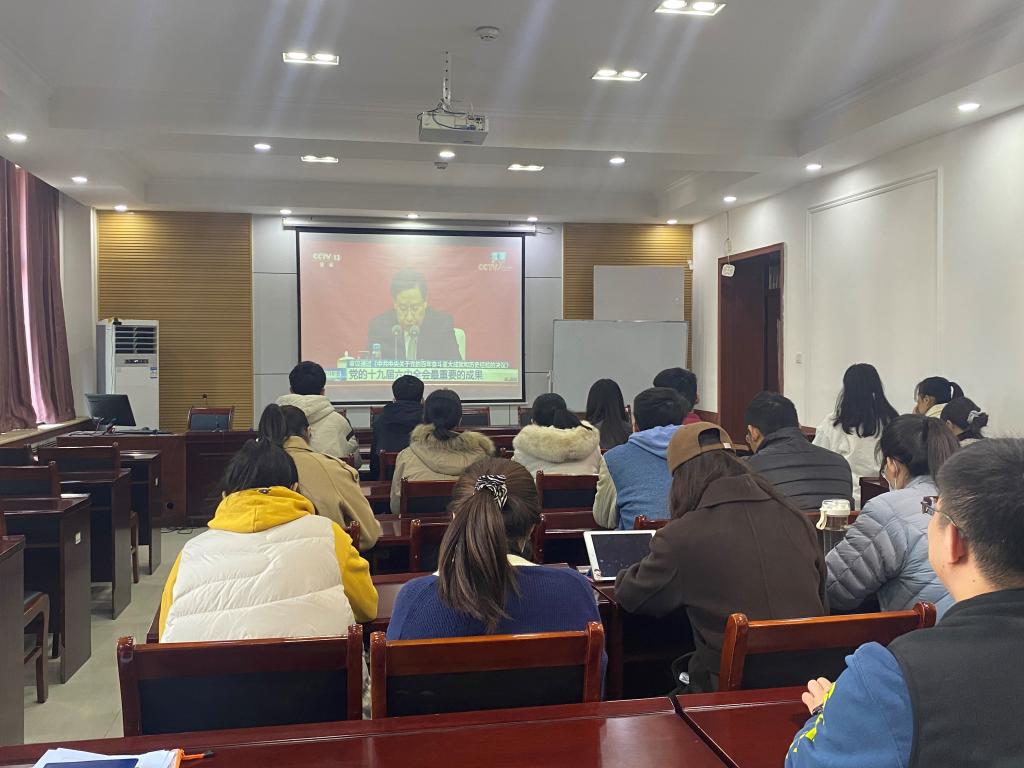会后大家一致认为,党的十九届六中全会深刻总结党的百年奋斗重大成就和历史经验,吹响了全面建设社会主义现代化国家的冲锋号,是引领实现中华民族伟大复兴的里程碑,为党和人民创造新的历史伟业标定了历史方位、时代坐标和前进方向。要深入学习贯彻全会精神,大力弘扬伟大建党精神,勿忘昨天的苦难辉煌,无愧今天的使命担当,不负明天的伟大梦想,坚定理想信念,牢记初心使命、埋头苦干、勇毅前行,争当新时代“四有”好老师,“六有”好青年,为学校、学院高质量发展做出应有的贡献。