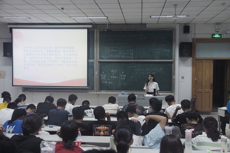不忘初心跟党走,砥砺前行展青春。主讲人从学院党委和本科生党支部的基本情况、党的基本知识、发展党员的程序、入党申请书的内容要求和格式要求等方面展开讲解,特别强调了要端正入党动机,提高思想觉悟,主动向党组织靠拢,争取早日加入党组织。