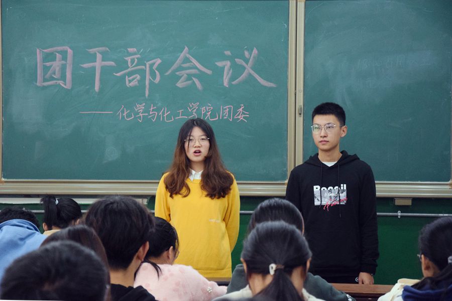 团委于化学楼111教室召开学院团干部会议。2020、2021级各团支部干部参加此次会议,会议由学院团委副书记滕茜、苏琦主持。