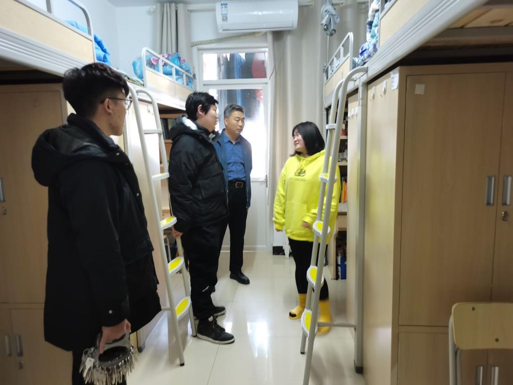 党委副书记毛永正,辅导员王亚平、冯德浩、黄秉帅、毛艺霏、蒋君带领学生会宿舍管理部成员对学院全体学生宿舍展开了安全卫生检查。