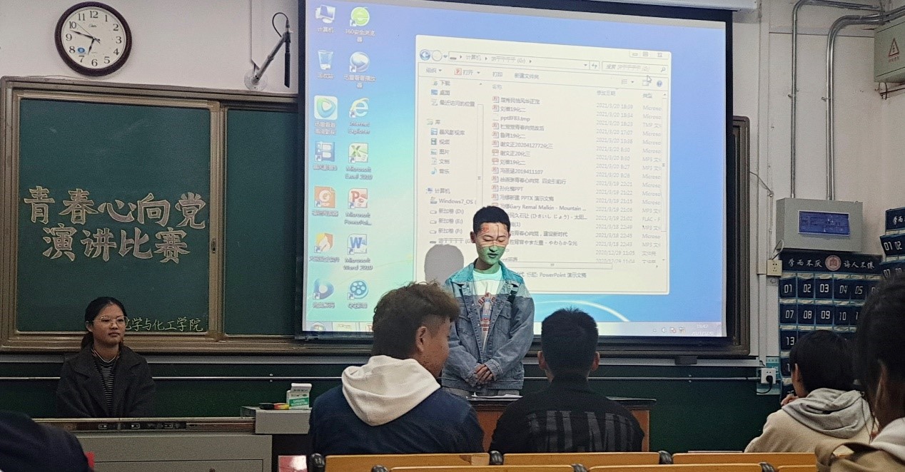 于化学楼101教室成功举办“青春心向党”大学生庆祝建党一百周年主题演讲比赛。