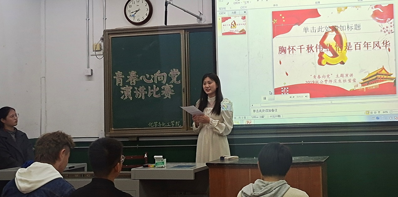 此次比赛为化院具有演讲爱好的同学提供了一个展示自我的平台,让同学们在抒发知党、爱党、颂党的真实情感中,传承红色基因和优良革命传统,从而凝聚起为中华民族伟大复兴而努力奋斗的强大正能量,为进一步推进化院党建工作奠定了良好基础。
