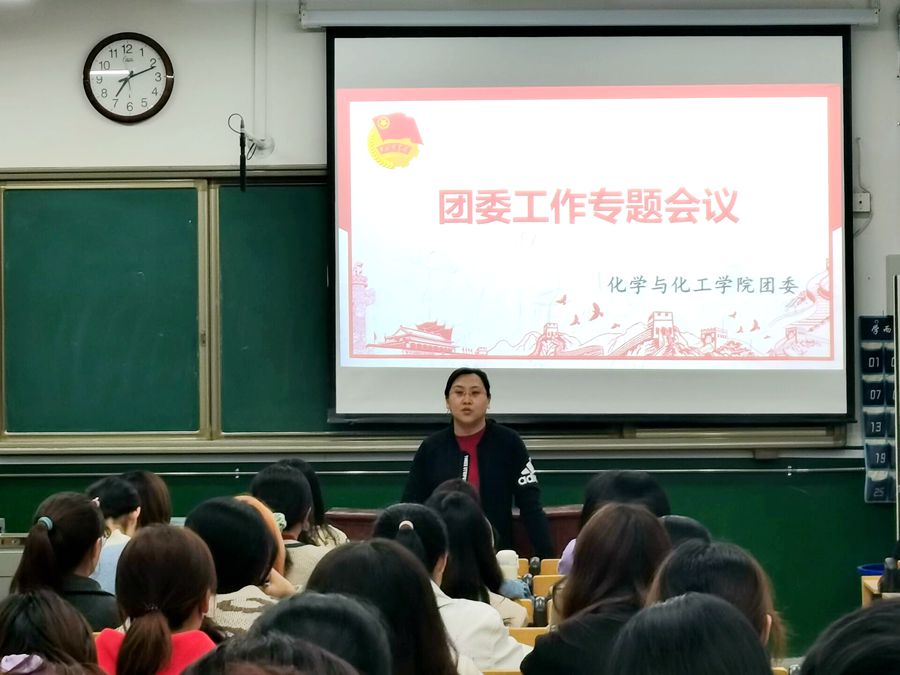 于化院院楼105教室召开团委工作专题会议。出席本次会议的有团委书记孙金玲及化院全体团支书、组织委员、宣传委员。本次会议由团委书记孙金玲主持。
