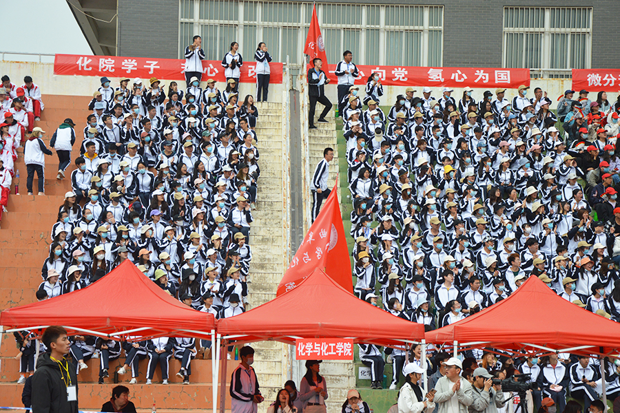 田径场上,一声声信号枪响,运动健儿们在各项田径赛事中斗志昂扬。观众席上,各学院旌旗飘扬,阵阵呐喊中凝聚着团结一心的力量。以字为媒,以声为介,化院学子在稿纸上挥洒着对运动员们的无限期待,在主席台上传递着对运动健儿的满腔激励。经过一上午的角逐,化院4×100米接力女子组、男子组分别取得第二名和第五名的优异成绩;徐剑桥在羽毛球掷远(学)决赛中荣获冠军;李基玉在男子800米决赛中勇夺亚军;信玉婷、张乔田连斩女子五项全能亚军、季军;冯楠同学在女子四百米栏预赛中取得第二名的优异成绩;其余运动员也取得了可喜可贺的成绩。