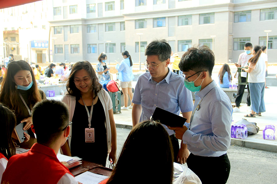 为保证迎新工作在做好疫情防控的同时高效有序地进行,化院安排19日省外新生入校,20日省内新生入校。经过一天的忙碌工作,已基本完成省外学生宿舍安排及入住工作。辅导员们在迎新点认真听取各部门迎新工作汇报,详细了解迎新工作流程和新生报到情况,与2020级新生、工作人员和志愿者亲切交谈,向他们送上亲切地问候。党委书记赵琪慰问了迎新点的志愿者,仔细听取了关于新生报道的人数和情况,并参观了新生宿舍,亲自动手测试了蚊帐杆的操控,重点关注了新生宿舍的桌椅摆放问题,还联系了宿管方面要求统一规整。最后,赵琪书记特地关心了解外省学生们的民俗、文化、衣食住行等,并对学生们的生活起居作了慰问,令人倍感亲切与温暖。