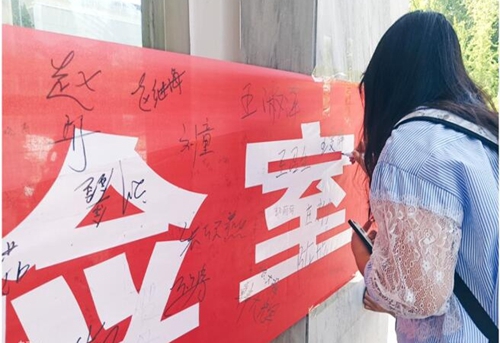 心理健康服务部部长许晓慧首先在各班详细介绍本次活动的目的,即提高同学们对心理健康的认识,拒绝用书本上学到的知识和实验室有害的药品伤害身边的同学。之后,各班心理委员开始播放视频《老梁有话说之复旦大学投毒案》,同学们认真观看,收获颇丰,纷纷表示要增强心理素质和操作水平,牢记实验安全。最后,各班学生以班级为为单位,有序来到系楼大厅进行承诺签名,坚决保证不将化学药品带出实验室。