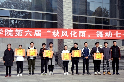 在大学生活动中心南侧隆重举办以“ 秋风化雨,舞动七十”为主题的第六届广场舞大赛。开幕式主席台就坐嘉宾有校党委常委宣传部长张隆海、校团委书记宋国栋、学生工作处副处长刘永礼、学院党委书记赵琪、学院党委副书记毛永正。舞蹈协会会长景志红、体育教学部葛瑞春、体育科学学院舞蹈教师王月敏、校啦啦队会长李玲、学院团委书记孙金玲担任评委。篮球直播吧
