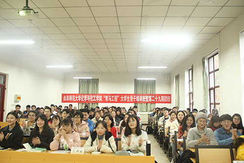 大学生骨干培训班暨第二十九期团校开班仪式于老文史楼228隆重举行。校团委书记宋国栋、学院党委副书记毛永正、学院团委书记孙金玲、2018级辅导员冯德浩、2019级辅导员王亚平出席了开班仪式。本次培训邀请校党委宣传部刘萌老师为化院学生干部作了精彩而富有意义的报告,学院团委书记孙金玲主持此次开班仪式。