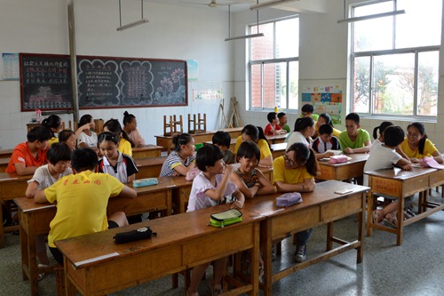 甲烷支教团的师生们来到邹城市田黄镇中心小学。