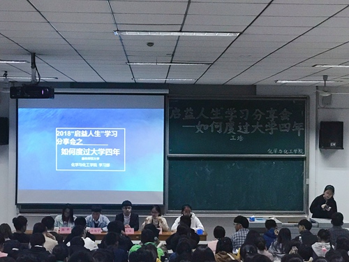 学生会学习部承办的两场“启益人生”学习分享会分别于综合楼201、301教室成功举办。本次分享会共邀请到了10位2016级和2017级的优秀学生代表,2018级全体学生参加此次学习分享会。
