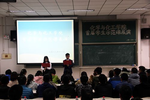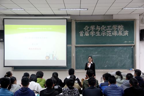 举办的首届学生示范课展演活动于综合楼306教室举行。曲阜师范大学教务处处长胡钦晓、学院党委书记赵琪、学院院长尤进茂、学院党委副书记孙俊华、学院副院长冯媛媛、学院教法教研室主任姬广敏、学院教法教研室老师苗深花、学院团委老师王亚平出席本次活动。本次活动还邀请了在第五届全国高等院校化学专业师范生教学素质大赛及第六届全省师范类高校学生从业技能大赛中获得优异成绩的邢慧君、王博、邢梦凡、顾磊、戚振佳五位同学担任主讲,展示授课技能。学院2017级、2018级部分同学参加了本次活动。