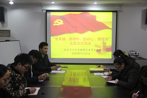 研究生党支部在学院218会议室组织开展“学英雄、学榜样、践初心、勇担当”主题党日活动。