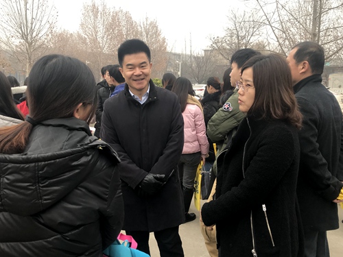 寒风刺骨,师生情暖人心。孙俊华与王亚平站在考生人群中,与他们亲切交谈,悉心问候,并提醒同学们注意考试注意事项以及考试技巧等考试细节问题。从日常衣食住行到考试临场发挥,方方面面,一一叮嘱。同学们纷纷表示,两位老师的到来让他们感受到了学院对考研人的肯定与期望,希望自己能够稳定发挥,取得好成绩,不负自己,也能够为化院争光添彩。满载着化院师生的祝福,大巴离开学校,开往考点城市。