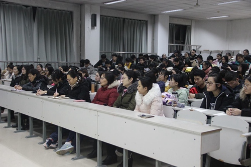 随后化学专业负责人姬广敏老师作了教育实习指导。他针对学生在实际实习工作中可能会遇到的一些问题和困难,拿自己的亲身经历来举例,以丰富的阅历就实习具体要求提出了指导原则,从实习准备、实习过程、实习方式这三个方面对教育实习做了详尽的指导:希望大家要做好充分的目的准备、困难准备和资料准备;在进行教学实习和班主任工作实习的过程中要主动、认真、仔细、礼貌;在实习中要争取多上课,上不同类型的课,并且课后要多反思,审视自身的行为,还要多参加各种活动,积累各种资源。他的指导不仅让实习生们充分了解了在实习中如何“听”、“看”、“做”、“思”,也让见习生收益良多。