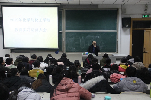 于2019年1月18日晚在综合楼406教室举行了2016级师范生教育实习动员大会,教学副院长、院团委书记、指导老师和2016级化学专业全体师范生参加了会议。会议由胡蕾老师主持。