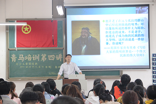 大学生骨干培训班暨二十八期团校专题报告会于西联一教室顺利举行。本次报告会邀请我校马克思主义学院朱斌老师主讲,2018届主席团、团委学生会部长以及各班班长团支书参与本次学习,报告会由冯德浩主持。