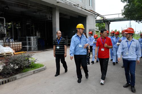 首先工作人员对实践队员们进行了相关的安全培训,熟悉在该公司实践应注意的问题。随后在工作人员的带领下,全体队员参观公司,了解生产车间布局及公司整体布局。通过参观公司,改变了队员们以往对化工厂重污染、安全没保证这种先入为主的印象,从而有了更加深入而正确的认识。