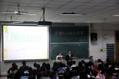 本次文明礼仪知识竞赛,不仅提高了同学间的合作团结精神,增进了同学间的感情,同时也充分展现了我们此次活动的宗旨—文明伴我青春梦,共创化院和谐风。