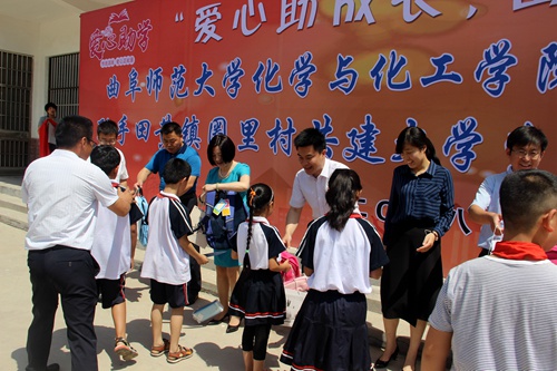 为圈里村留守儿童捐赠学习用品。