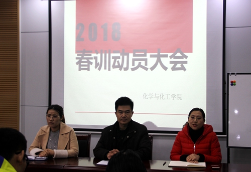 于226教室召开春训动员大会。党委副书记孙俊华、团委书记孙金玲、辅导员王亚平、团委副书记朱萌,学生会主席宋桂林以及主席团全体成员出席。体育部成员、全体春训运动员、2017级班长团支书体育委员均参加了本次会议。会议由孙金玲主持。