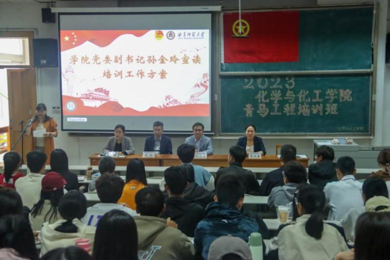 图为学院党委副书记孙金玲宣读培训工作方案