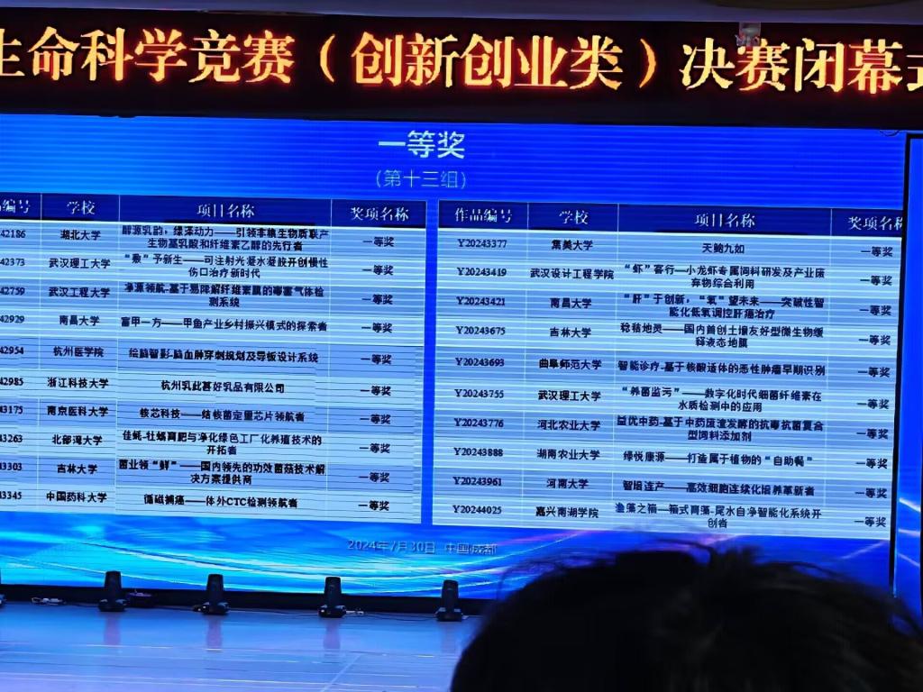 7月30日,在西华大学举办的第九届全国大学生生命科学竞赛总决赛中,学院李甲豪、张明慧、颜昀天、柳晓梅、王锡琳、李嘉良的作品“智能诊疗—基于核酸适体的恶性肿瘤早期识别”获得创业实践组全国一等奖(全国仅十项);学院王蒙、王江丽、秦志鑫、王艺霖的项目“骨关节炎润滑/抗炎协同治疗研究”获创新创业类全国三等奖。竞赛由教育部高等学校大学生物学、生物科学、生物技术与生物工程和食品科学与工程四个专业教学指导委员会、高等学校国家级实验教学示范中心联席共同指导,是教育部认可的全国大学生学科A类竞赛之一,是目前国内各高校生命科学领域认可度最高的全国学科专业赛事。