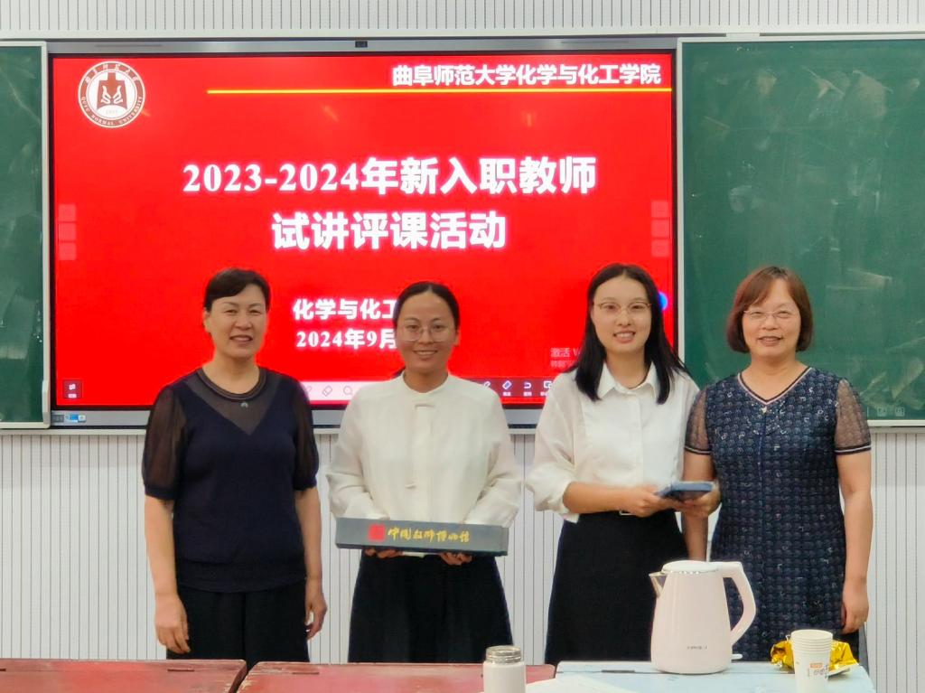 新进教师的教学风采。评委们针对课程定位、教学目标、教学内容、教姿教态、板书情况等提出了中肯的建议和意见。活动最后,评委为表现优秀的青年教师颁发了小礼品。