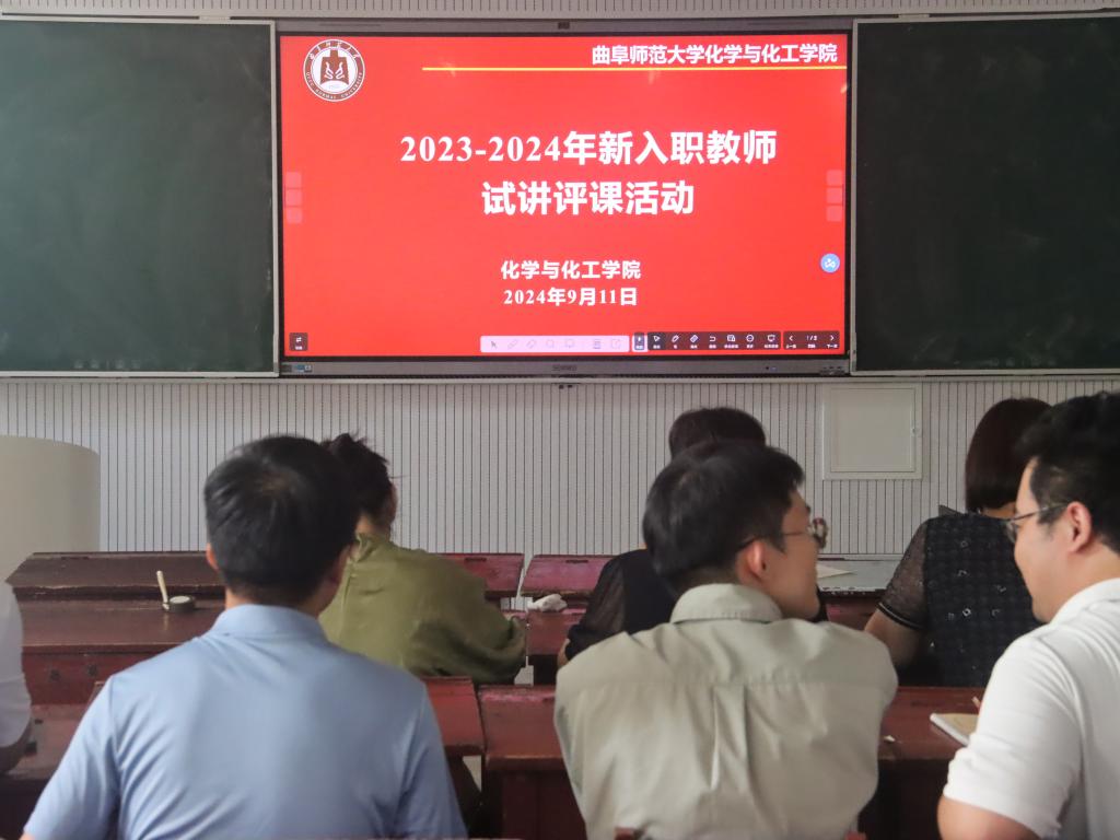 在化学楼205教室进行了新入职教师试讲评课活动。学院组织了由校教学督导、学院教学督导、学院负责人、专业负责人、教研室主任、一流课程负责人等7人组成的评课团队对新教师的讲课进行了点评。