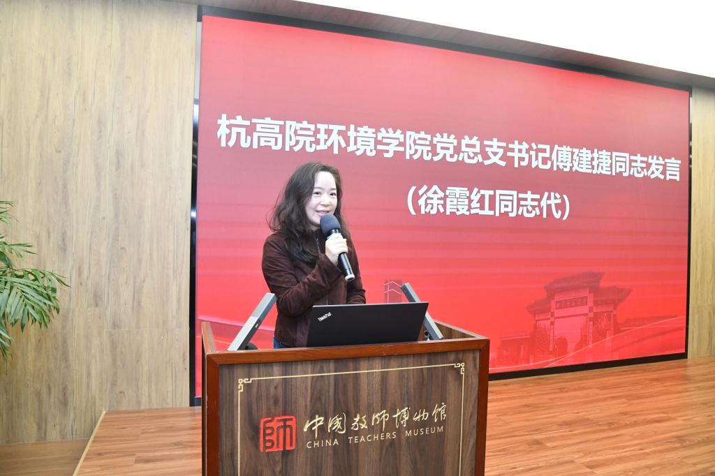 教工党支部书记朱霄以“党建引领,融合发展——“党建+”为立徳树人聚势赋能”为题,汇报了学院党委以党建为引领,推动党建全面融入和带动以学术、学生、学者、学科为四大发展要素的各项工作。
