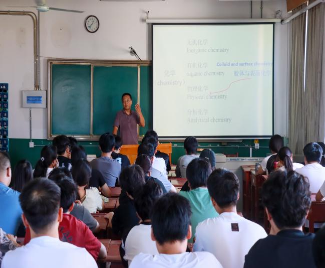 党委书记赵琪、院长冯媛媛、党委副书记孙金玲、副院长李平、副院长刘鹏走进课堂,以 “学生” 身份聆听由陈威老师主讲的《胶体与界面化学》课程,将“开学第一课”与教学调研深度融合,为新学期教学工作筑牢质量根基。