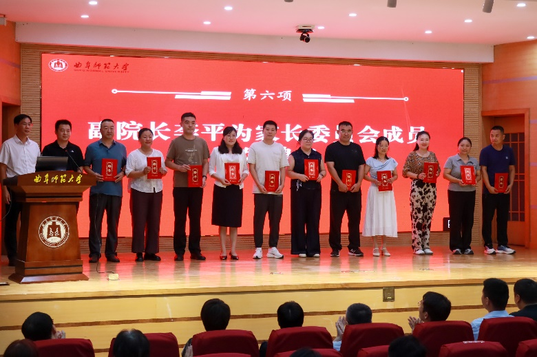 最后,由工作人员宣读家长委员会成员名单和学院督导员名单,学院副院长李平为家长委员会成员颁发聘书,副院长刘鹏为学业督导员颁发聘书。
